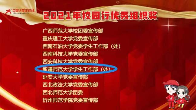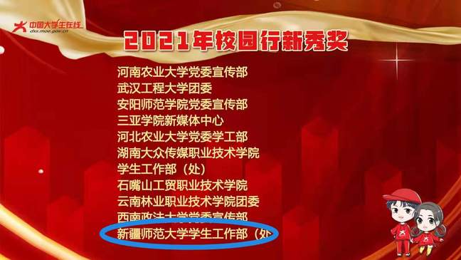 新疆师范大学学生工作部(处)荣获“2021年校园行新秀奖”