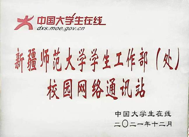据了解,为进一步宣传好我校学生思想政治教育工作,发挥校园网络文化矩阵传播,打造学校网络思政育人品牌,由校学生工作部(处)负责管理的“新疆师范大学学生工作部(处)校园网络通讯站”于2020年12月起探索运营,于2021年12月被教育部中国大学生在线正式授牌。