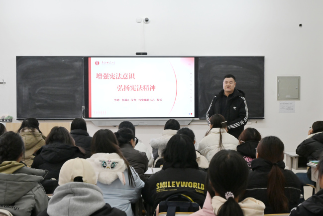 12月9日,校党委副书记、校长吾满江·艾力深入“三进两联一交友”联系班级——我校教育科学学院小学教育2024-3班,在温泉校区2号教学楼110教室讲授题为《增强宪法意识,弘扬宪法精神》的专题课程。