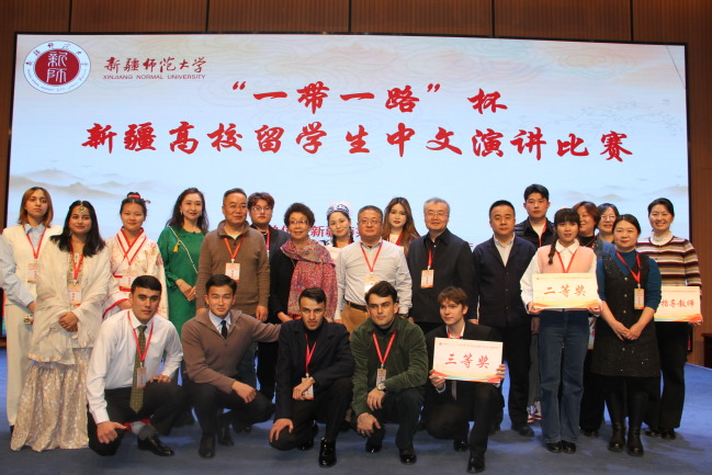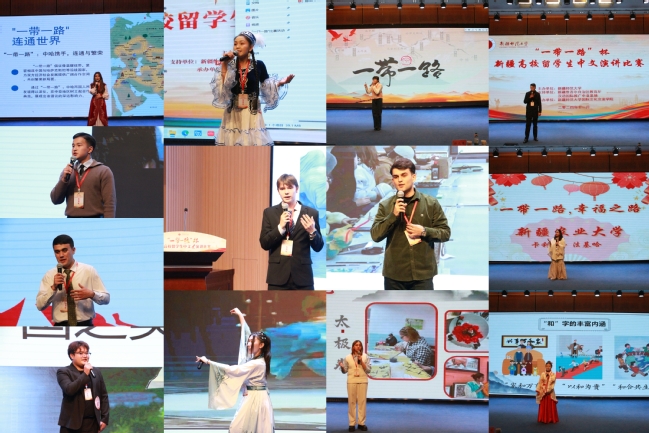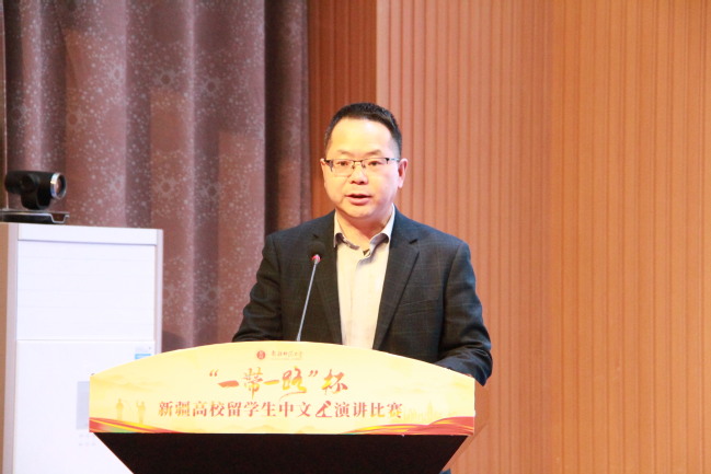 11 月 30 日,“一带一路”杯新疆高校留学生中文演讲比赛在我校温泉校区举行。来自新疆医科大学、新疆农业大学、新疆财经大学、喀什大学、新疆艺术学院、乌鲁木齐职业大学及我校共7所高校的留学生参与比赛。校党委常委、统战部部长彭无情出席活动,各参赛高校相关部门或学院领导和特邀专家担任比赛评委。