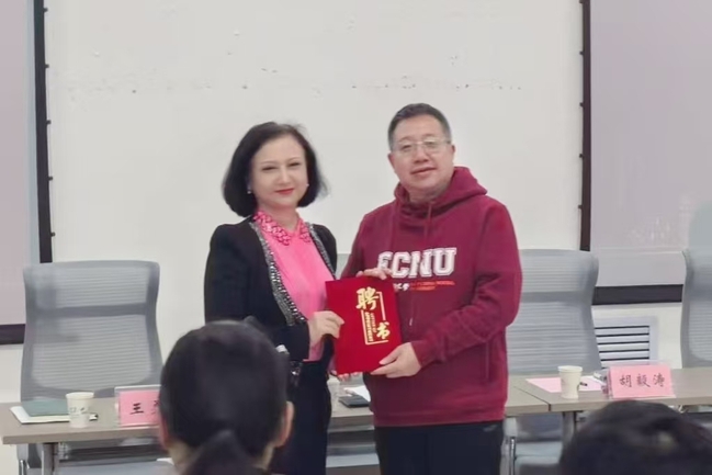 校党委常委、组织部部长胡毅涛为阳志清教授颁发聘书