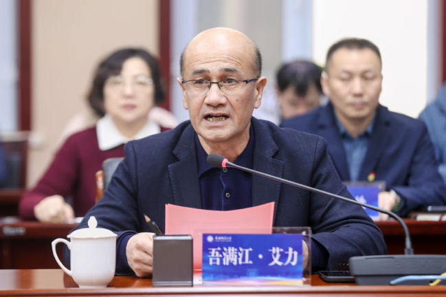 吾满江·艾力致欢迎辞。他表示,新疆师范大学作为区属重点师范院校,一直致力于为党育人、为国育才,此次与乌鲁木齐市人民政府的合作将为学校的发展注入新的活力。