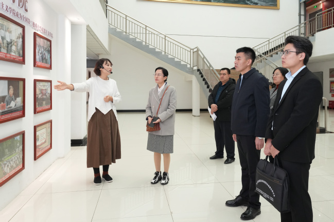 座谈会前,赵梦云一行在我校教育科学学院实验中心、新时代文明实践教育基地暨马克思主义理论教育基地、铸牢中华民族共同体意识教育实践基地(美育浸润基地)进行参观调研。