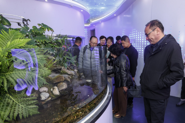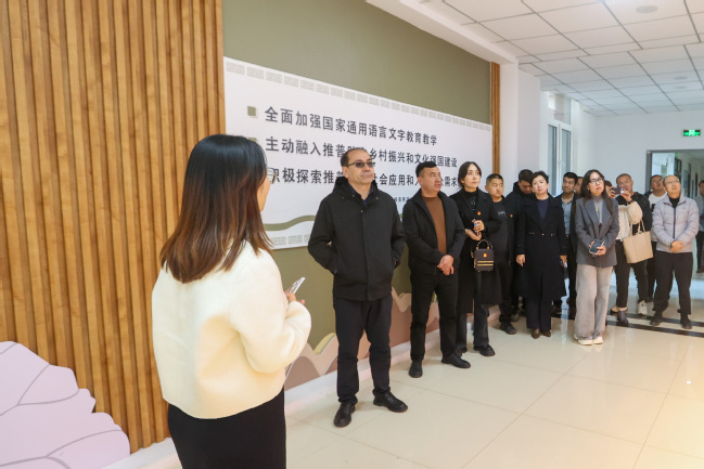 座谈会前,党委办公室(学校办公室)副主任阿布都如·苏力等陪同艾尼瓦尔·喀迪尔一行,先后参观了我校铸牢中华民族共同体意识教育实践基地(美育浸润基地)、新时代文明实践教育基地暨马克思主义理论教育基地、国家语言文字推广基地、教育科学学院实验中心教育技术实验室、生命科学学院科技楼、VR实验室、书法教室等场所。