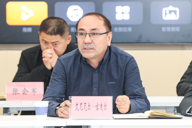 艾尼瓦尔·喀迪尔在座谈会上介绍了此次考察的目的和意义。他表示,莎车县教育局高度重视与高校的合作与交流,希望通过此次调研座谈,能够深入了解我校在师资培养、教育信息化等方面的成功做法,并将其运用到中小学教育中,为莎车县的师生们搭建更广阔的发展平台。他也期待未来能够与我校建立长期稳定的合作关系,共同推动双方教育事业的发展。