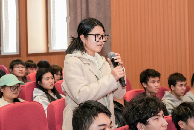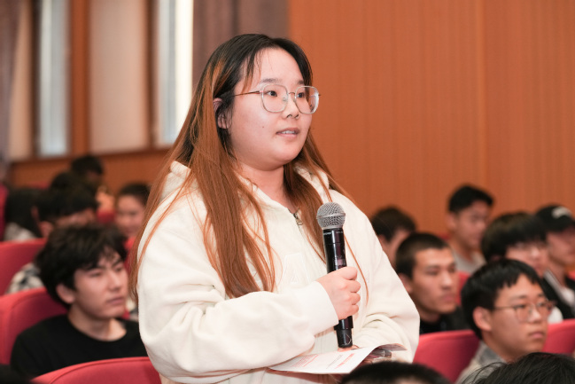 活动现场,学生代表向梁红教授、李伟格老师赠送了鲜花。参加活动的师生纷纷表示,聆听了梁红教授、李伟格老师的讲述内心深受触动。数学科学学院应用统计学23-7班刘博文说:“老一辈科学家面对困难不屈不挠、勇攀科技高峰的拼搏精神,为了国家航天事业无私奉献、默默耕耘的爱国情怀,以及郭永怀院士的科研精神和李佩先生坚韧不拔、淡泊名利的生活态度深深感染了我,他们的爱国情怀、高尚品德和无私奉献的精神值得我们每一个人学习。我们应该以老一辈科学家为榜样,将这种精神内化于心、外化于行,为实现我国科研事业的蓬勃发展贡献自己的力量。”国际文化交流学院24级语言学及应用语言学韩雪瑶表示:“老一辈科学家身上所具备的坚韧不拔、永不放弃以及爱国精神令我动容,当我通过此次讲座深入了解了‘两弹一星’科学家们的事迹时,我的内心充满了深深的敬意和感动。他们的精神是一种深植于内心的信仰,这正是我们青年所要学习的精神。”物理与电子工程学院物理学24-3班谢拓说:“梁红教授分享了他的父亲梁思礼院士的故事,梁思礼院士为祖国的航天事业奉献了一生,他的爱国情怀深深的打动了我。李伟格老师向我们分享了郭永怀院士与他的夫人李佩先生的事迹,空难时舍身保护了数据资料的郭永怀,是夜空中灿烂的明星,照耀着前行的道路。一生淡泊名利的李佩先生,是中科院最璀璨的明珠!”