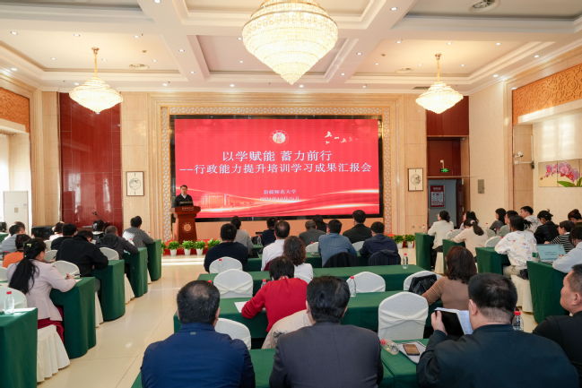 根据学校党委统一部署,由我校人事处、工会联合开展行政管理人员综合能力提升培训班,选派相关学院、职能部门40名行政管理人员于10月13日至19日赴北京师范大学开展为期一周的学习交流。为及时总结反思培训成效,充分展示学员学习成果,分享学习收获,增进业务交流,10月25日下午,我校2024年行政管理人员综合能力提升培训学习成果汇报会在温泉校区学术交流中心二楼多功能厅举行。校党委常委、副校长帕力旦·吐尔逊,校党委常委、副校长王世杰出席会议,部分职能部门、学院领导和行政管理人员及全体学员参加会议。