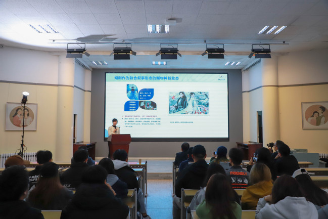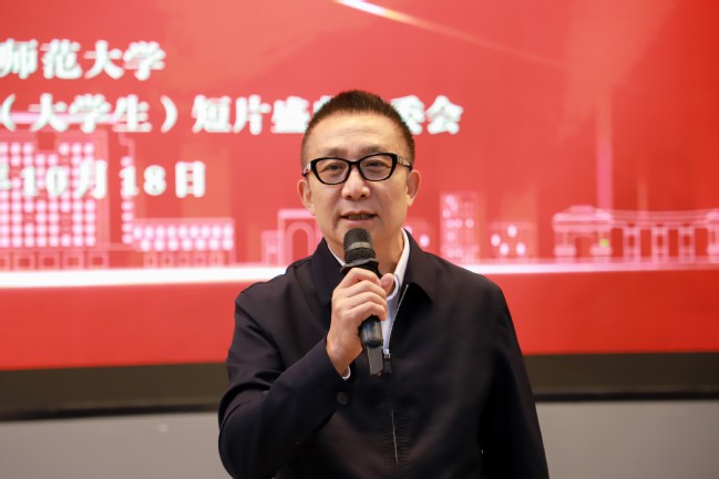 仪式上,现场师生共同观看了首届“金石榴”全国青年(大学生)短片金奖作品。仪式结束后,赵晖还现场分享了创作经验,与同学们开展互动交流。