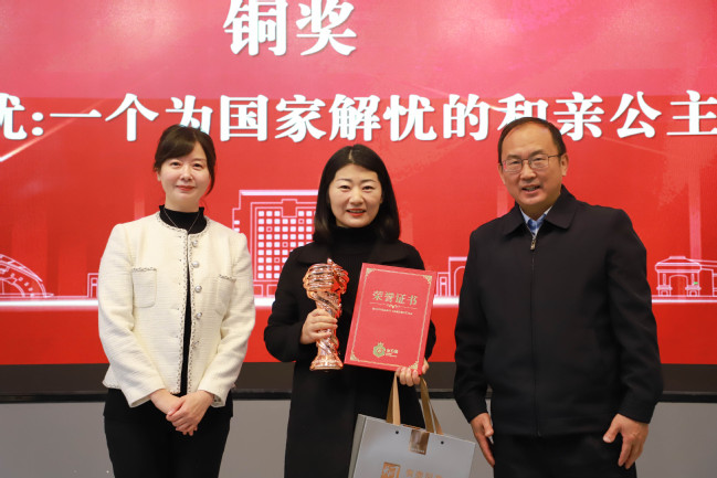 活动中,刘俊、赵晖共同为首届“金石榴”全国青年(大学生)短片铜奖获得者《刘解忧:一个为国家解忧的和亲公主》颁奖。许彬、许波为首届“金石榴”全国青年(大学生)短片优秀奖奖获得者 《四时“新”韵 即“疆”启程》颁奖。