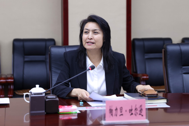 座谈会上,帕力旦·吐尔逊代表学校对黄加栋一行的到来表示热烈欢迎,介绍了我校基本情况、办学特色以及近年来学校在重点马克思主义学院建设、信息学科、教育信息化等领域的经验做法及具体措施。