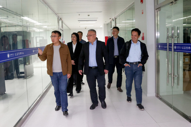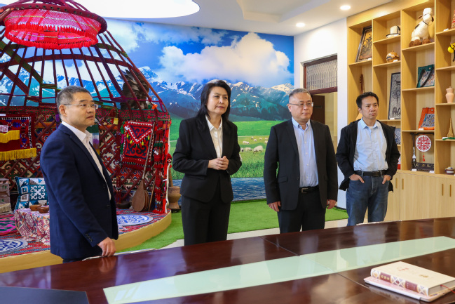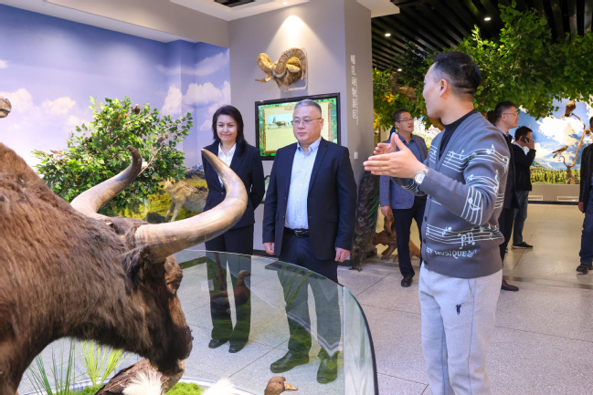 座谈会前,黄加栋一行在我校新时代文明实践教育基地暨马克思主义理论教育基地、信息管理中心、铸牢中华民族共同体意识教育实践基地(美育浸润基地)、科技楼生物标本馆进行参观调研。