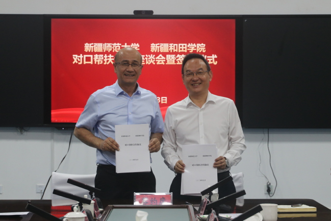 我校党委副书记、校长吾满江·艾力新疆和田学院党委副书记、副院长王志坚签署合作协议