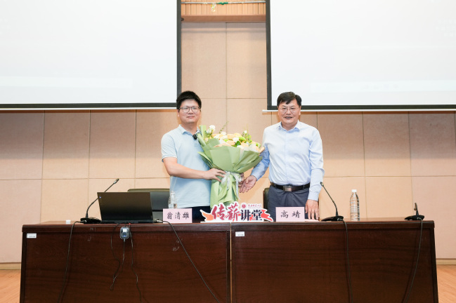 高靖首先对翁清雄教授的到来表示热烈欢迎,并向翁清雄教授介绍了我校“传薪讲堂”作为“大思政课”品牌活动在学校思政工作中发挥的作用和意义。