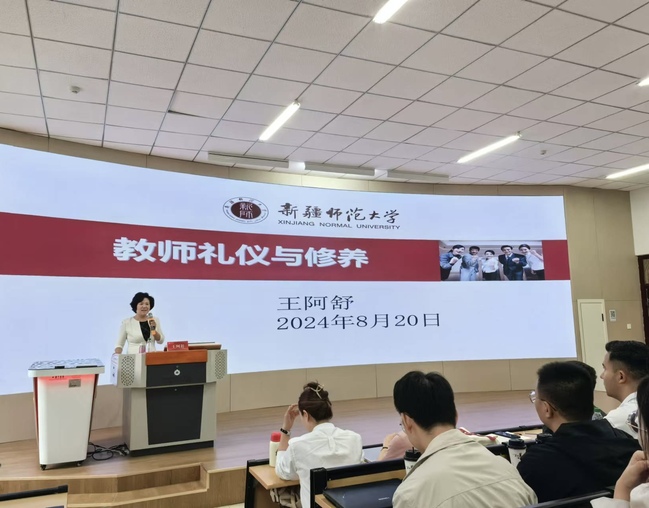 活动伊始,党委教师工作部部长张海燕带领全体新入职教师开展了“破冰活动”,促进新教师交流与融合,增强团队凝聚力。组织部副部长、人事处处长刘蓉、教务处处长路俊哲、科研处处长李进围绕人事人才、教育教学、科学研究等方面的教师支持保障体系建设进行了专题分享,帮助新入职教师明确角色定位、知悉岗位要求、做好职业规划、提高专业素质。培训特邀自治区党委党校(行政学院)副校(院)长李艳教授,我校原副校长、马克思主义学院学术院长孙秀玲教授,教育科学学院院长程良宏教授、中国语言文学学院王阿舒教授等知名专家学者进行了专题讲座,深入学习贯彻习近平新时代中国特色社会主义思想和党的二十大精神、二十届三中全会精神,加强铸牢中华民族共同体意识教育,引导新入职教师在建设教育强国进程中自觉担当作为。