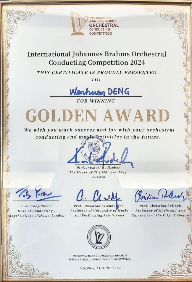 我校音乐学院教师邓文欢荣获“2024勃拉姆斯国际乐团指挥比赛”金奖