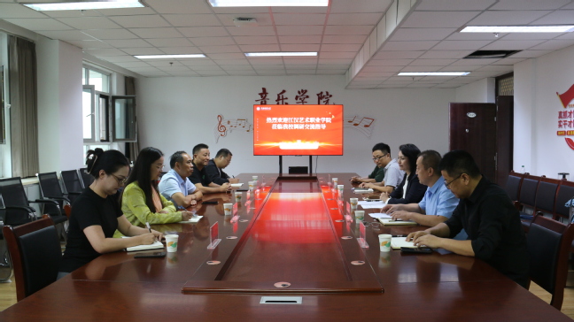 8月19日上午,江汉艺术职业学院党委副书记、校长程伦嵩一行5人来我校调研交流。校党委常委、副校长帕力旦·吐尔逊出席座谈会,座谈会由我校音乐学院党委书记杨志刚主持。