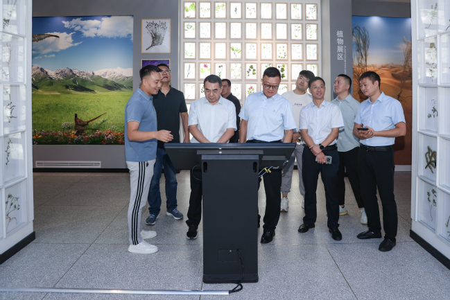 座谈会前,蔡国军一行在我校新时代文明实践教育基地暨马克思主义理论教育基地、铸牢中华民族共同体意识教育实践基地(美育浸润基地)、生命科学学院科技楼生物标本馆、北鲵展区等地参观调研。