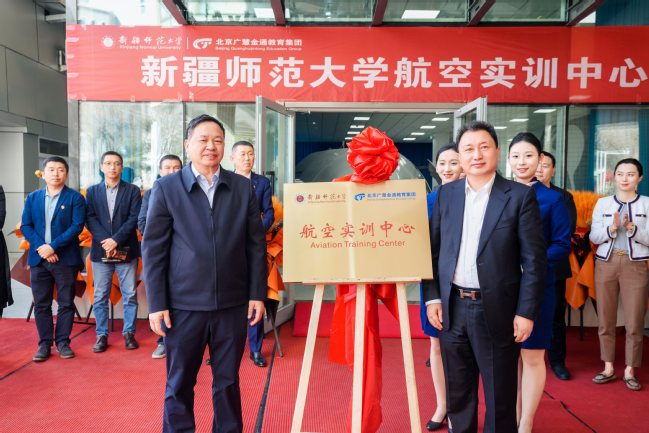 近日,我校与北京广慧金通教育集团校企共建的航空服务艺术与管理专业航空实训中心正式揭牌启用。校党委书记蒋海军、北京广慧金通教育集团董事长焦殿成等双方领导共同为实训中心揭幕,标志着新疆在深化产教融合、服务国家战略、推动区域航空产业升级上迈出关键一步。
