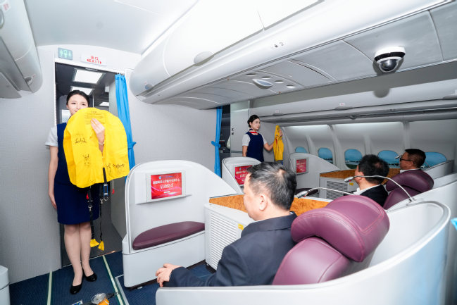 航空服务专业学生在模拟舱内演示标准化服务流程