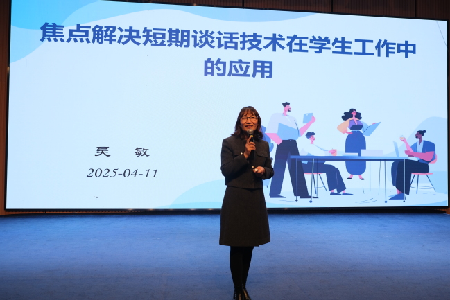 开幕式后,原新疆大学心理中心主任、注册督导师吴敏老师为现场师生开展《焦点解决短期谈话技术在学生工作中的使用》主题讲座。吴敏通过现场互动,结合实际工作案例,讲解焦点解决短期谈话技术的应用方法和技巧,鼓励辅导员在工作中积极了解学生状态,善于发现并强化学生的资源和优势,塑造学生积极的自我认同。现场师生认真聆听、积极互动,培训后纷纷表示收获颇丰,对今后开展学生心理健康工作有了更有效的思路和方法。