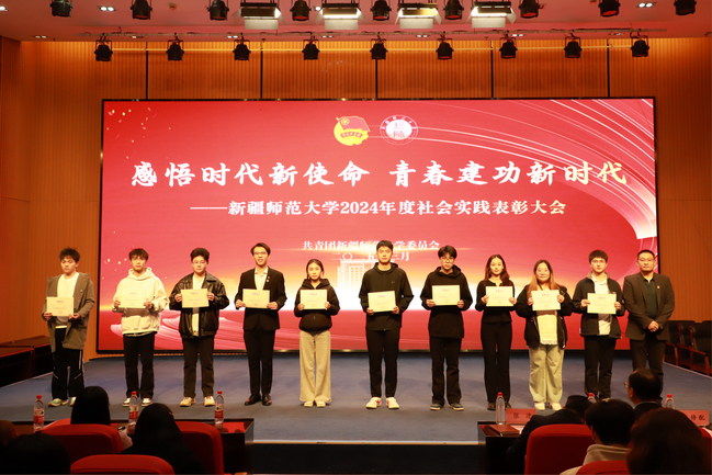 会上,卢修配作2024年度社会实践活动汇报。2024年,学校高度重视社会实践,精心组织“十个一”主题活动,内容涵盖志愿服务、教育帮扶等,学生团队深入边疆、乡村,服务基础教育,践行文化润疆,活动形式多样,成效显著,广受认可。