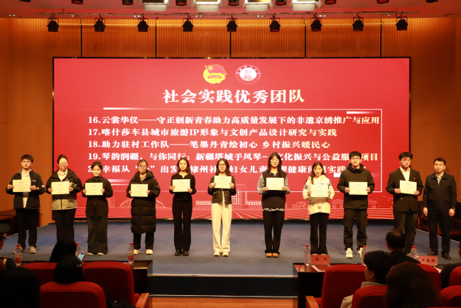 张进宣读了社会实践表彰决定。与会领导和嘉宾为在社会实践活动中涌现出的优秀组织单位、优秀指导教师、社会实践优秀团队及先进个人颁奖。