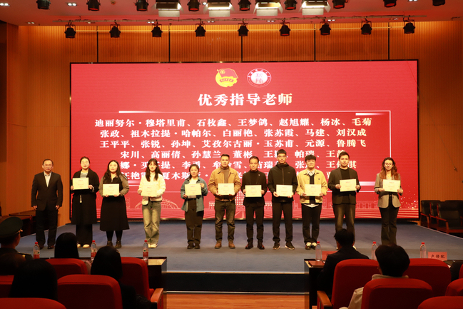 校党委副书记刘俊为“优秀指导教师”代表颁奖
