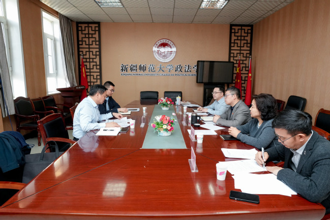 在政法学院,蒋海军先后来到模拟法庭等实践基地进行查看,深入了解学院整体发展情况,并仔细听取了学院工作汇报。与会人员结合自身工作实际,立足学科立院、学术兴院、学生为本、学以致用的发展思路进行了深入交流。蒋海军充分肯定了政法学院近年来发展建设取得的成绩,并就学院的发展提出了具体要求:一要强化目标导向,深入推进科研成果转化,提升学科服务社会质效,增强学院整体科研能力;二要关心教师成长发展,强化青年教师学历提升和教学科研能力提升工作,加强对青年博士、在读博士教师的成长帮扶;三要继续加强学科建设,持续深化课程改革,积极探索教学方法创新,不断提升教师育人能力和水平;四要进一步加强教风学风建设,注重教育教学规范,对标对表做好本科教育教学审核评估工作,促进人才培养质量再上新台阶。