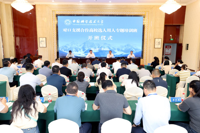 7月12日-17日,由中国科学技术大学主办,我校承办的“对口支援合作高校选人用人专题培训班”在温泉校区学术交流中心举办,来自中国科学技术大学对口支援的西南科技大学、江西理工大学、新疆师范大学、六盘水师范学院和闽江学院等5所高校近40名教师参加培训。中国科学技术大学党委书记舒歌群、校党委书记葛国参加开班仪式。开班仪式由中国科学技术大学党委副书记邓建松主持。