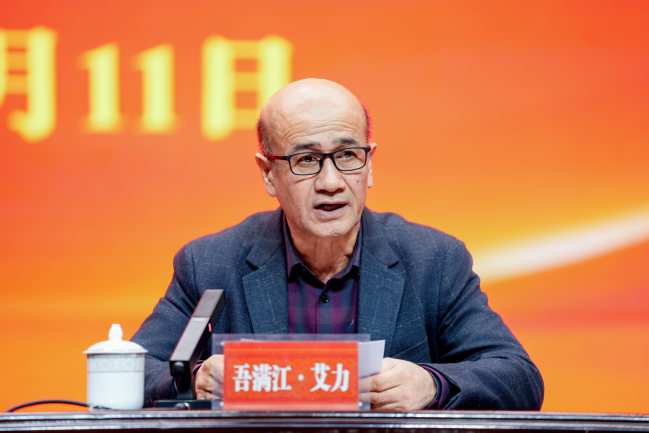 3月11日下午,我校2025年宣传思想文化工作会议在温泉校区昆仑讲堂召开,校党委书记蒋海军出席并讲话,校党委副书记、校长吾满江·艾力主持会议。
