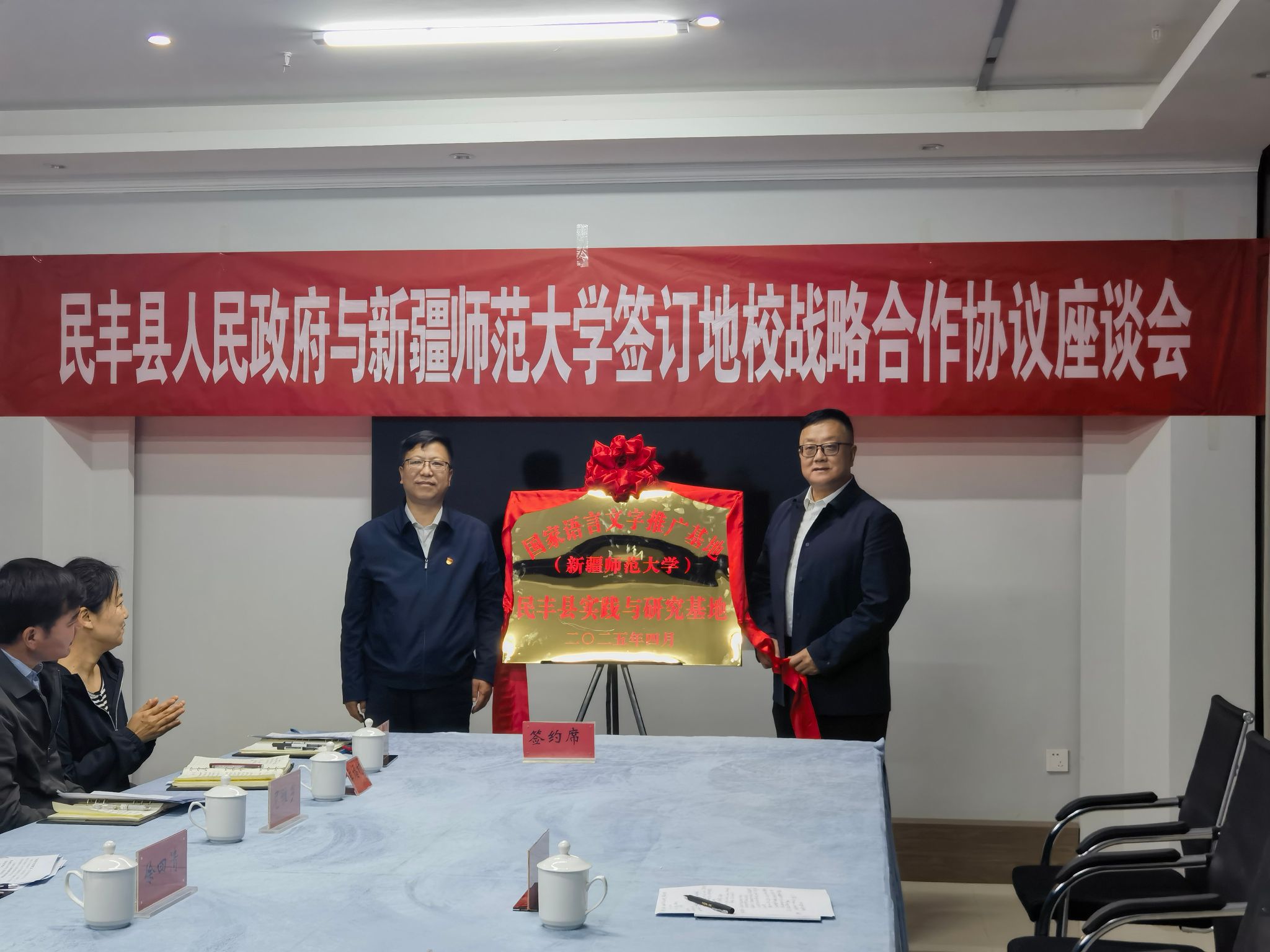 座谈会上还举行了签约和授牌仪式。陈彤代表学校与民丰县人民政府签署合作框架协议,并为民丰县授牌“国家语言文字推广基地(新疆师范大学)民丰县实践与研究基地”。刘宏宇为民丰县行知小学、尼雅乡幸福村授牌“自治区天山英才项目经典诵读民丰县示范点”。