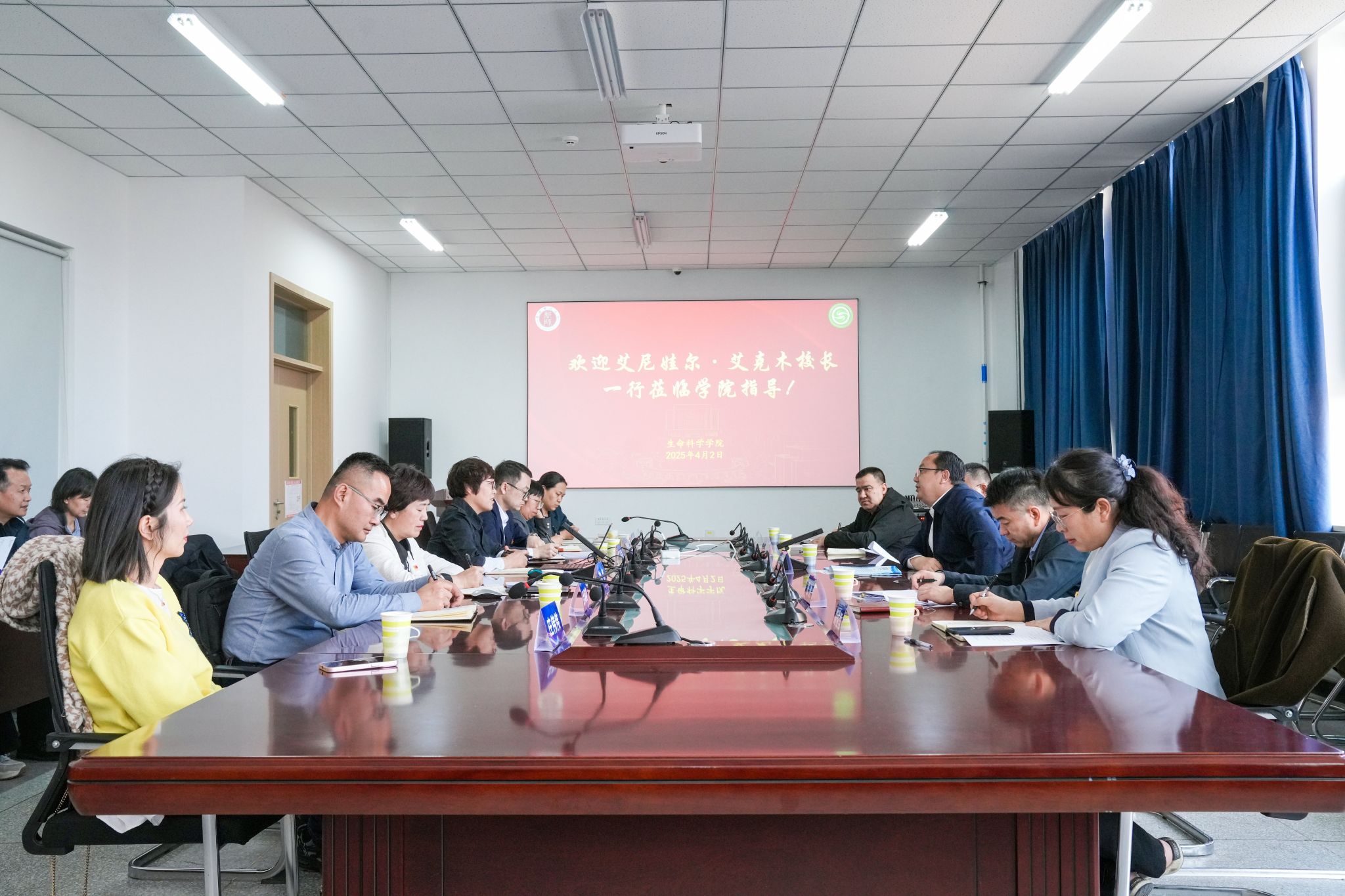 校党委副书记、校长艾尼娃尔·艾克木在生命科学学院座谈交流