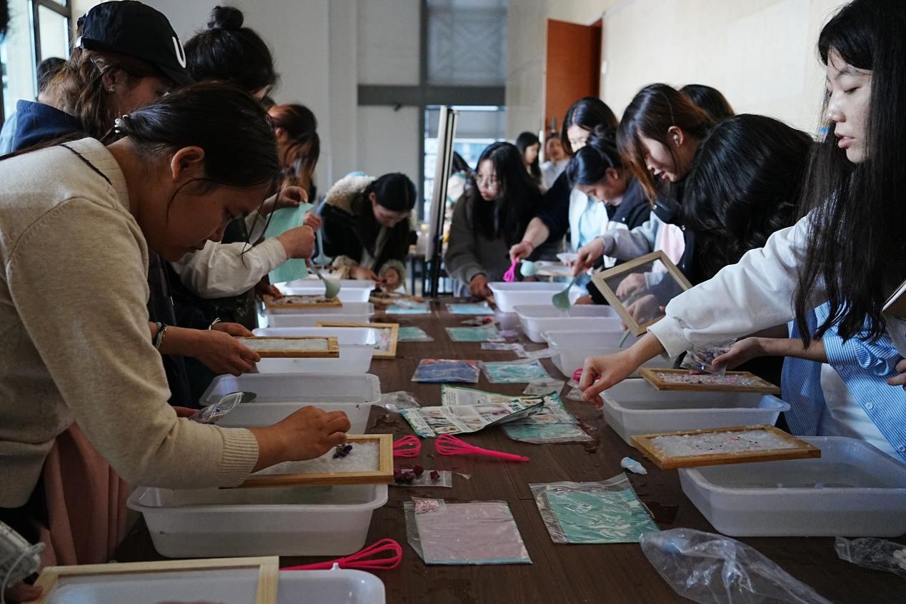 讲座结束后,“造纸术DIY”“诗词手账本制作”、新疆建疆70年历史、文化、地理知识竞答等活动纷纷进行,吸引了众多学生的热情参与,现场洋溢着浓厚的文化氛围。