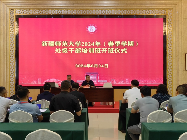 为认真贯彻落实《自治区干部教育培训规划(2023—2027年)》,提升我校处级干部综合能力素质,推动党纪学习教育走深走实,按照《新疆师范大学党委党校2024年教育培训工作方案》要求,6月23日至30日,我校2024年(春季学期)处级干部培训班在温泉校区举行,各学院、部门共28位处级干部参加培训。校党委常委、组织部部长胡毅涛出席开班仪式和结业典礼,校党委组织部副部长、人才工作办公室主任付东明主持仪式。