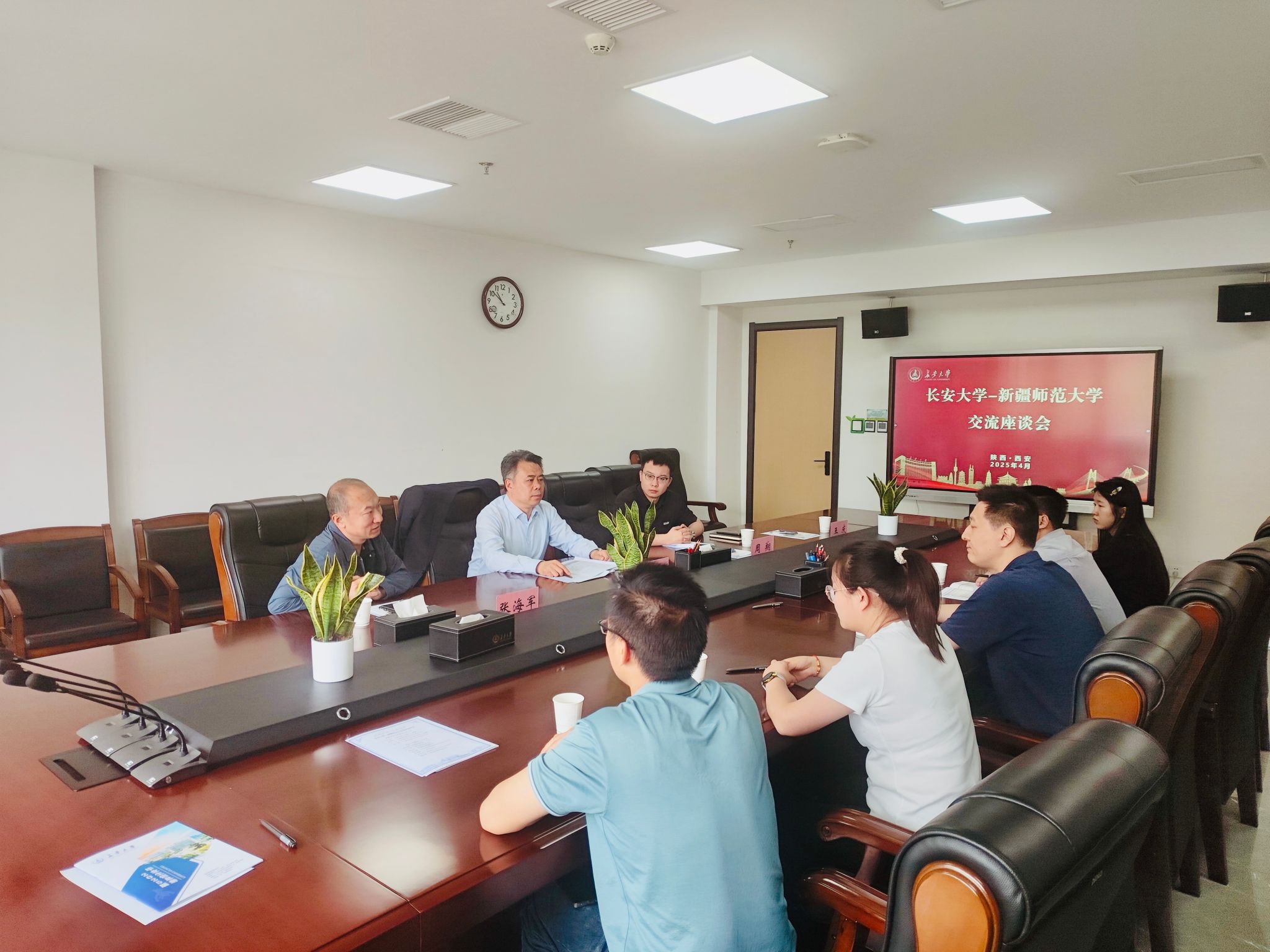 交流座谈会上,王世杰向各高校介绍了新疆师范大学在学科建设、科研创新及社会服务方面取得的突破性进展,重点讲解了近年自治区和我校在人才引进方面的政策与举措。长安大学党委副书记李文雄、陕西师范大学副校长李炳忠分别介绍了本校的办学历史、发展概况、人才培养、师资队伍建设、科研平台和招生就业情况。双方就交叉学科建设、科研联合攻关、师资定向培养等议题展开深入交流。