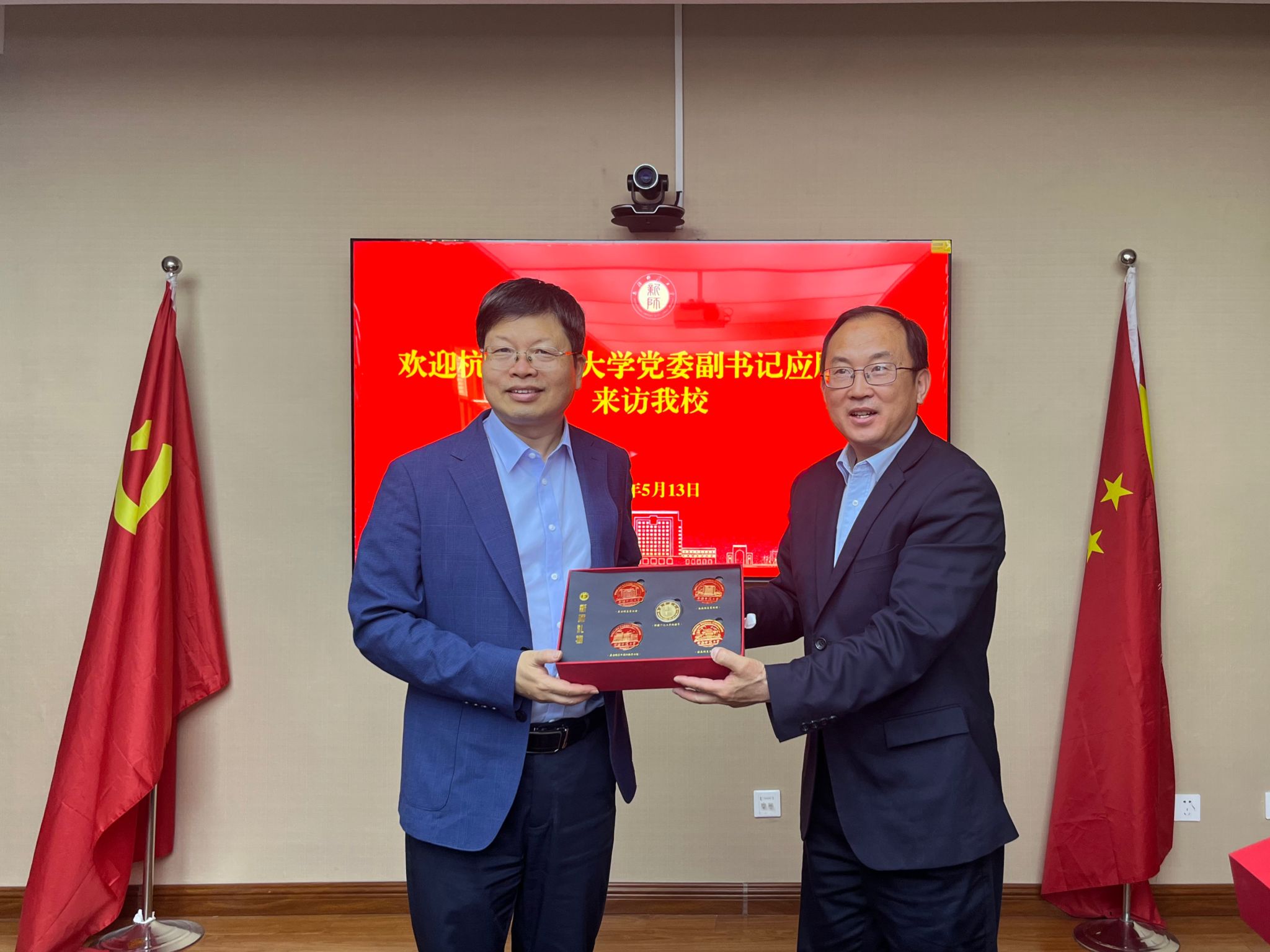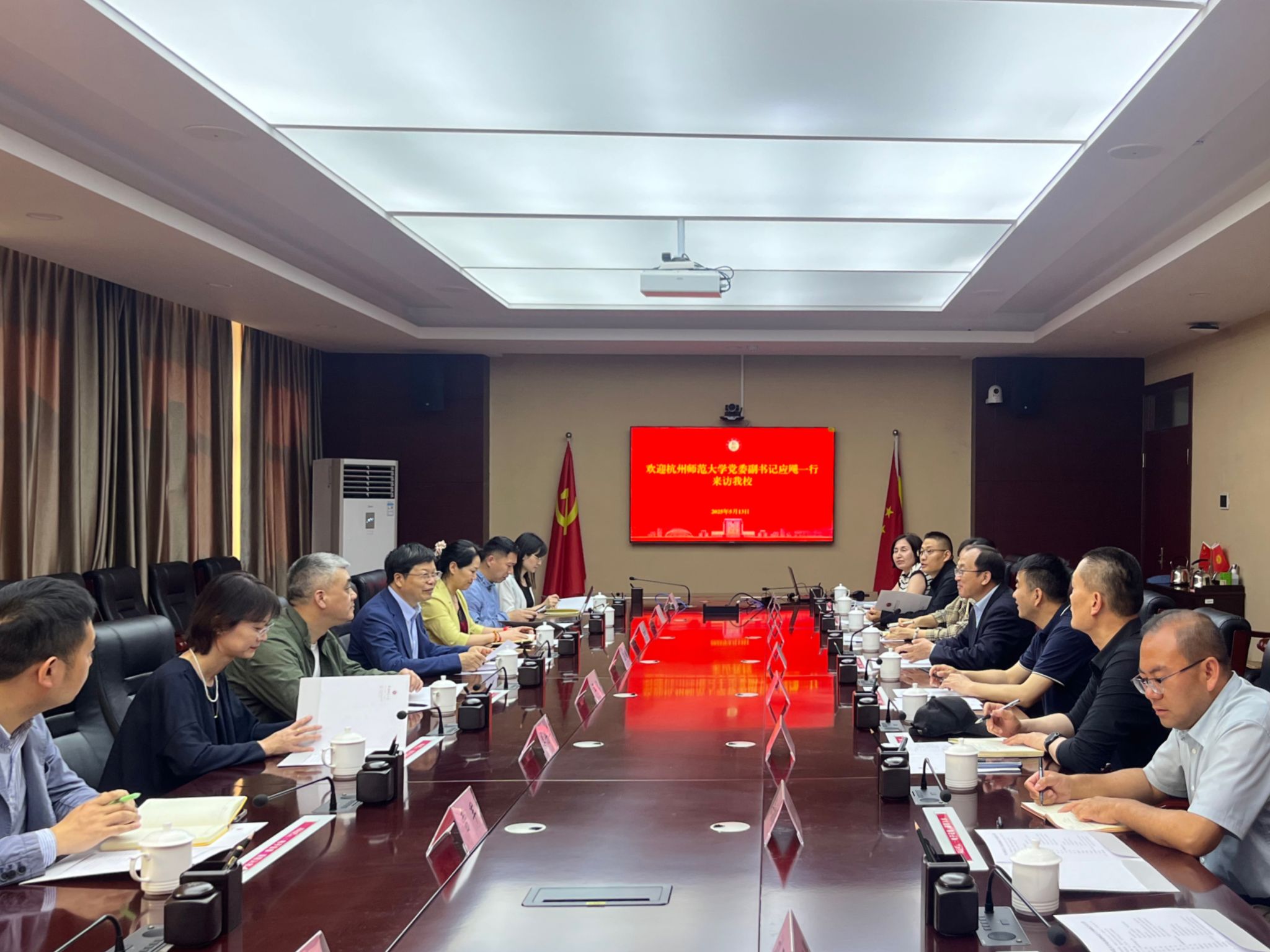 5月13日,杭州师范大学党委副书记应飚一行8人来我校参观调研并交流座谈。校党委副书记刘俊出席座谈会,党委学生工作部、团委、保卫处及部分学院相关负责同志参加座谈。