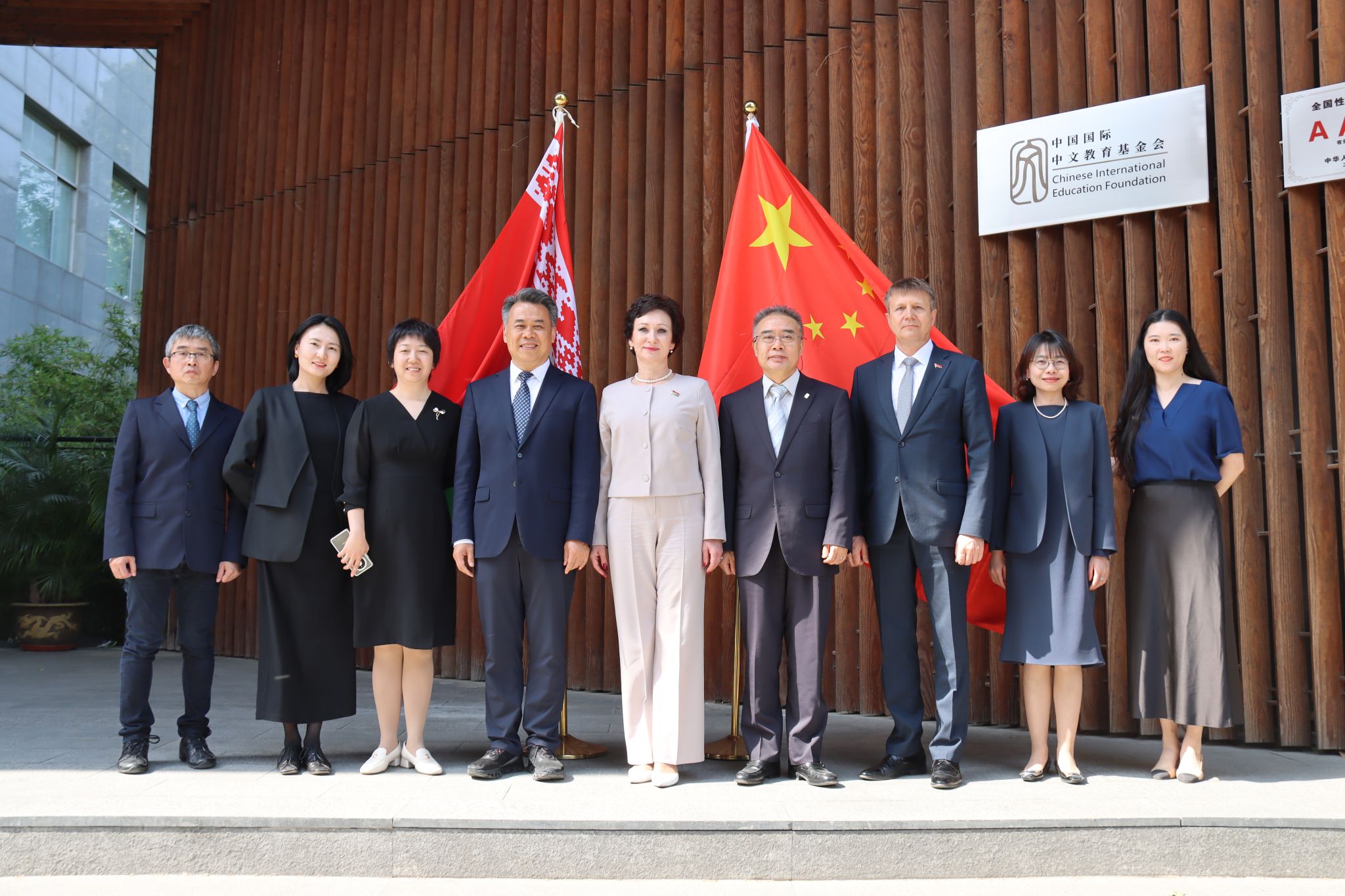 5月15号,校党委常委、副校长王世杰携白俄罗斯格罗德诺国立大学校长伊琳娜·基图尔科一行访问中国国际中文教育基金会,共同提交了白俄罗斯格罗德诺国立大学孔子学院申办报告。基金会副理事长、秘书长赵灵山会见两校代表团,三方就孔子学院申办工作进行实质性交流。