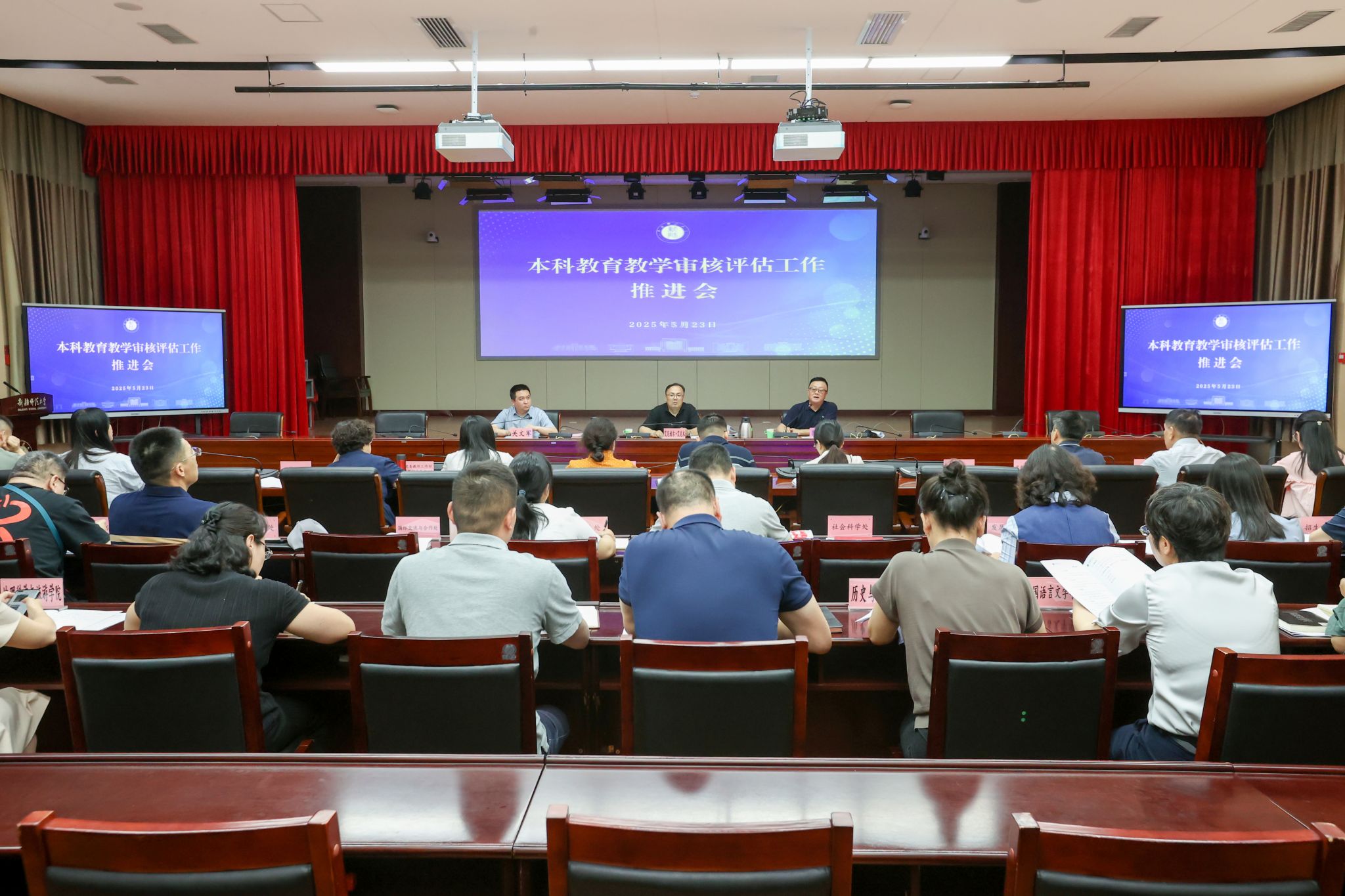 为全力推进本科教育教学审核评估工作,凝聚全校共识、明确工作方向,5月23日下午,我校召开本科教育教学审核评估工作推进会。校党委副书记、校长艾尼娃尔·艾克木出席会议,各学院党委书记、院长、相关职能部门负责人及评建办全体成员共50余人参加会议。会议由校党委常委、副校长陈彤主持。