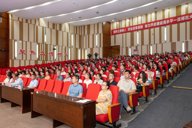 为贯彻落实习近平总书记关于大力弘扬教育家精神的重要指示精神,营造全校学习和弘扬教育家精神的良好氛围,7月3日下午,我校举办“教育家精神”宣讲活动,特邀自治区优秀教师“教育家精神”巡回宣讲团成员库尔班·尼亚孜、许智宏、井慧芳、李勇作报告,校党委副书记刘俊出席活动。宣讲活动通过“线上+线下”同步进行,主会场设在温泉校区昆仑讲堂,近400名教职工在现场聆听报告,各学院、部门、附属中学设立分会场,1800余名教职工在26个分会场观看直播。