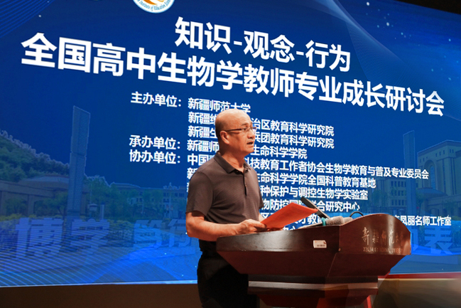 7月4日至6日,“知识-观念-行为”高中生物学教师专业成长研讨会在我校成功举办。本次研讨会由新疆师范大学、新疆维吾尔自治区教育科学研究院、新疆生产建设兵团教育科学研究院主办,我校生命科学学院承办,中国青少年科技教育工作者协会生物学教育与普及专业委员会、新疆师范大学生命科学学院全国科普教育基地、新疆特殊环境物种保护与调控生物学实验室、中亚跨境有害生物防控国际联合研究中心、新疆维吾尔自治区天山英才教育领军人才培养计划李凤丽名师工作室、乌鲁木齐市教育研究中心协办。校党委副书记、校长吾满江·艾力出席会议并致辞。会议由我校生命科学学院党委副书记、院长赵惠新教授主持。
