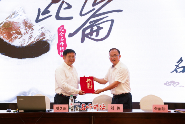 讲座开始前,刘俊代表学校向项久雨教授颁发客座教授聘书。