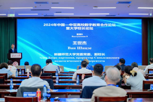 6月27日下午,2024年中国—中亚高校数字教育合作论坛暨大学校长论坛在新疆大学博达校区举行,本次论坛由上海合作组织大学中方项目院校校长委员会主办,新疆大学和我校联合承办。教育部国际合作与交流司二级巡视员席茹、自治区教育厅一级巡视员刘剑出席开幕式并致辞。上合组织大学中方校长委员会主席、大连外国语大学校长刘宏主持开幕式。来自中国、哈萨克斯坦、吉尔吉斯斯坦、乌兹别克斯坦、塔吉克斯坦的26所高校代表参会。12所中外高校领导围绕数字教育主题先后发言。