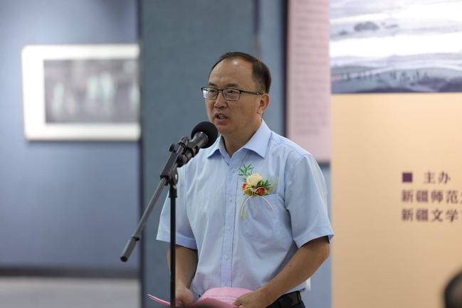 6月28日,由我校和新疆文联主办,新疆美术家协会、兵团美术家协会、新疆文艺评论家协会协办,首都师范大学美术学院、西北师范大学美术学院、甘肃省康乐县舒春光艺术馆支持的“丝路驼影 情系瀚海”——边塞画家舒春光诗意书画回顾展与学术研讨会在我校隆重开幕。自治区教育厅二级巡视员张蕾,校党委副书记刘俊,中国美协连环画艺委会委员、四川美术学院教授刘智勇,中央民族大学教授王建民、中国西部画院院长毛雪峰、新疆教育厅体艺卫科处处长陈希海,新疆美术家协会主席团成员以及舒春光教授的亲友与学生,媒体记者和本校师生代表近百人参加了开幕式。活动由我校美术学院院长李勇教授主持。
