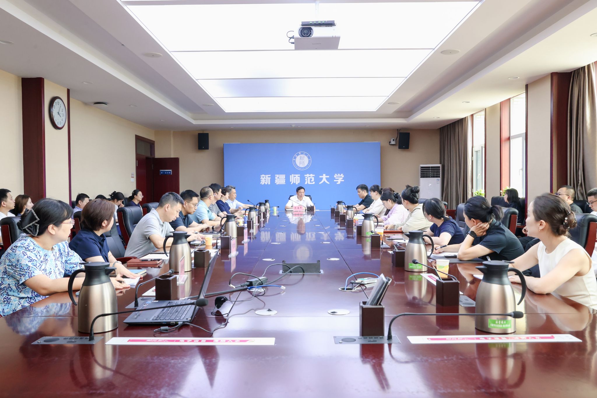 6月27日下午,我校2025年新考取博士教职工座谈会在温泉校区行政楼424会议室召开。校党委书记蒋海军参加会议并讲话,校党委常委、副校长王世杰主持会议。