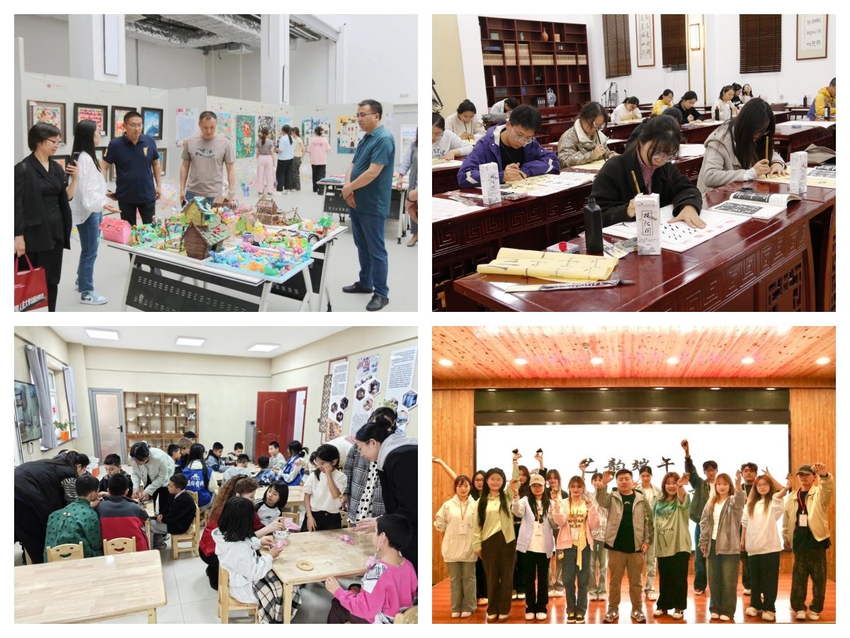 围绕“文化体验”计划,教育科学学院聚焦学生专业素养提升开展“展师风·育桃李”文化体验活动,展出了学生书画作品和手工艺品;中国语言文学学院开展“墨香四溢,笔绘芳华”书法兴趣班,助力师生文化素养与审美能力的提升;物理与电子工程学院开展“青春力量进社区之‘非遗传承显担当’及‘纸鸢童梦乘风起’”活动,学生志愿者与社区儿童在剪纸技艺、泥塑造型、风筝手工中,沉浸体验传统文化;美术学院举办了“艺韵端午,青春共扬”端午主题活动,学生们在游戏互动中,深切感受了中华优秀传统节日的深厚底蕴。