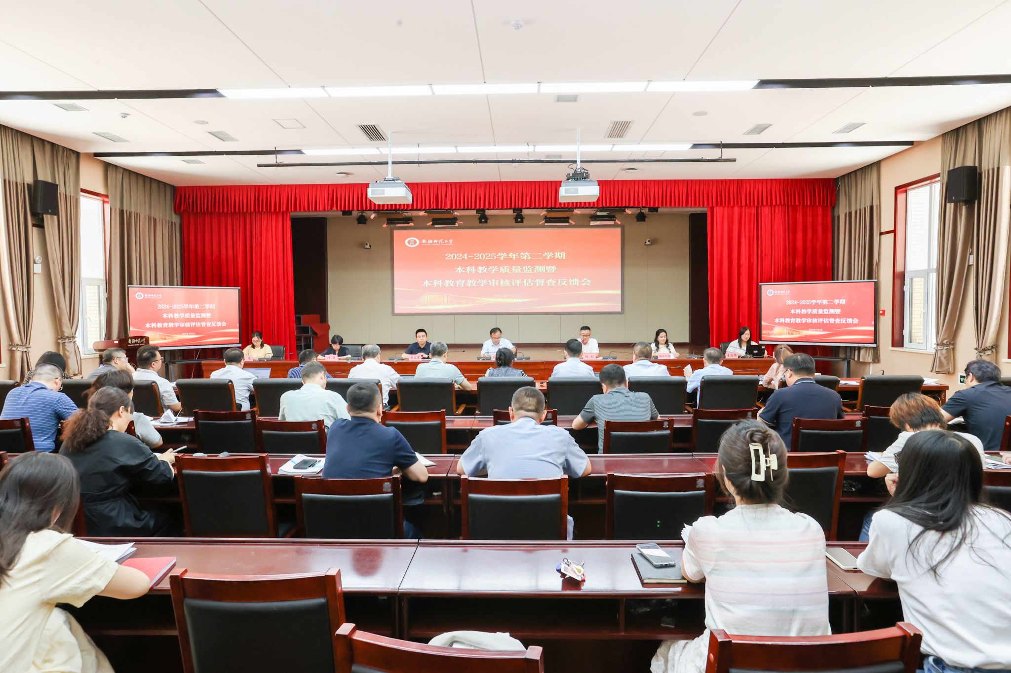 为进一步总结本科教学质量监测与教育教学审核评估前期工作成效,深入剖析存在的问题并制定针对性改进措施,7月3日下午,我校在温泉校区行政楼220会议室召开本科教学质量监测暨教育教学审核评估督查反馈会。校党委副书记、校长艾尼娃尔·艾克木,校党委常委、副校长陈彤,学校教学督导代表、各学院院长、主管教学副院长、教学秘书及教务处负责人参加会议。会议由陈彤主持。
