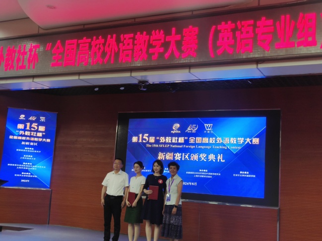 6月29日,第十五届“外教社杯”全国高校外语教学大赛(英语专业组)新疆赛区比赛在石河子大学顺利落下帷幕。大赛由新疆维吾尔自治区教育厅指导、上海外国语大学主办、新疆维吾尔自治区高校外语教学研究会与上海外语教育出版社协办,本次比赛共有来自新疆10所高校的11名教师参加复赛。我校外国语学院青年教师阿米拉·阿不都热西提经过现场授课和说课环节的层层选拔,取得了新疆赛区一等奖的优异成绩。