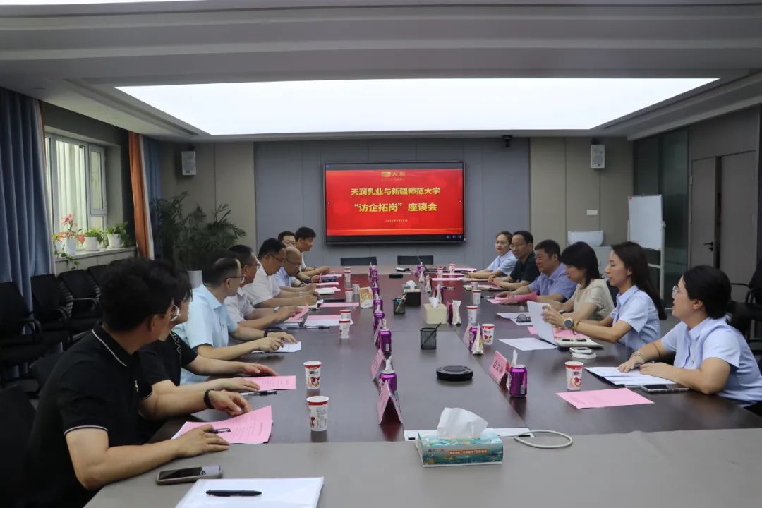 在座谈交流会上,新疆天润乳业股份有限公司党委书记、董事长刘让对我校一行的到访表示热烈欢迎,并详细介绍了企业的发展现状、未来规划以及在人才培养、技术研发等方面的合作需求。