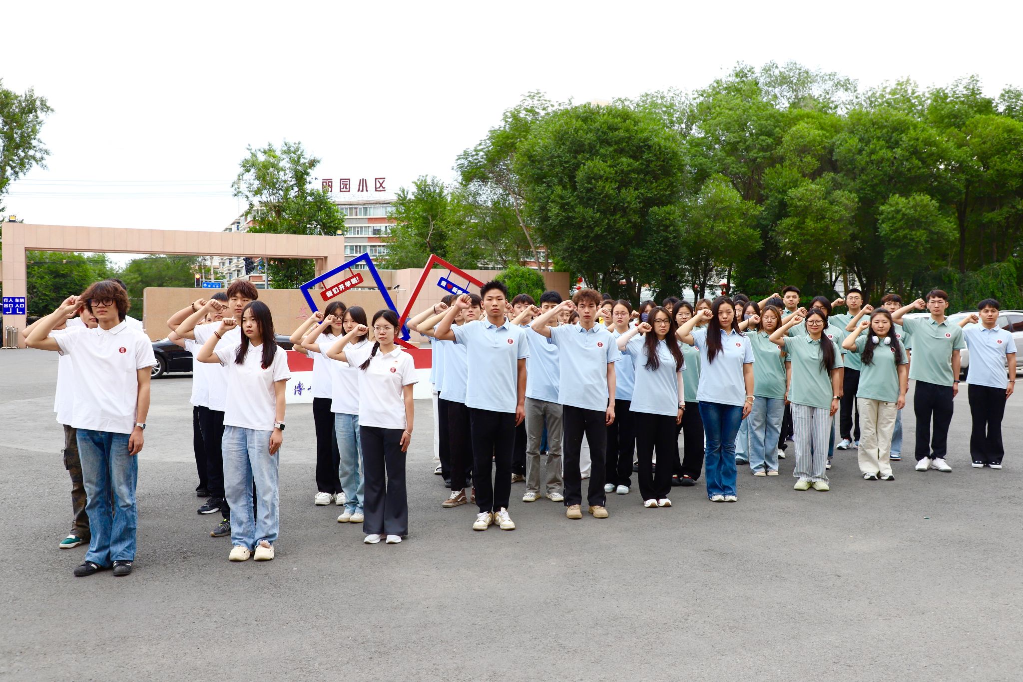动员讲话后,实践团全体成员在领誓人的带领下,面向队旗庄严宣誓。一句句铿锵有力的誓言充分展现了实践队员们昂扬的斗志、坚定的决心和投身社会实践、服务国家发展的青春担当。