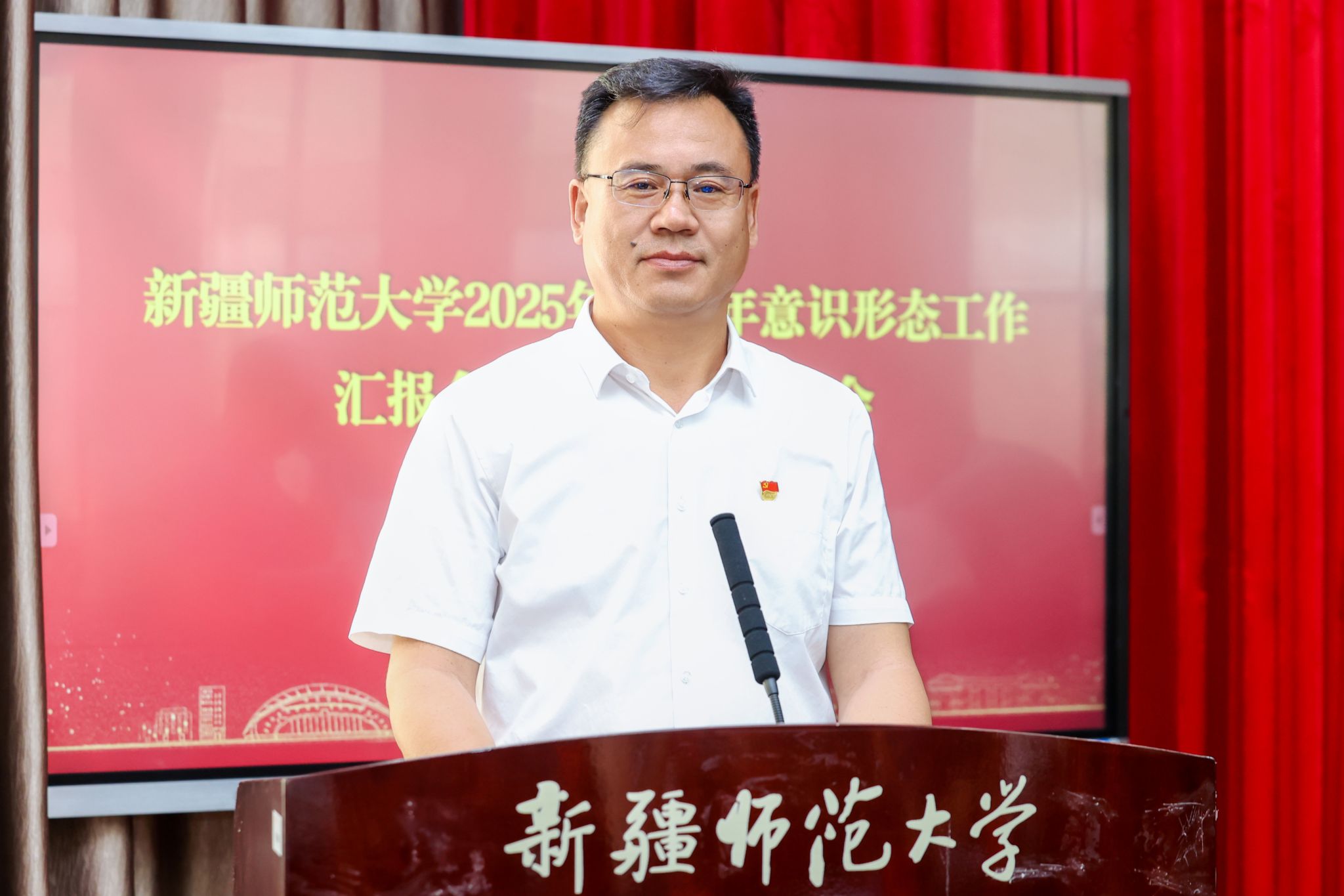 蒋海军强调,全校各级党组织要坚持以习近平新时代中国特色社会主义思想为指导,全面落实意识形态工作责任制。要深刻把握面临的新形势新任务,加强阵地建设,防范化解意识形态领域风险。要全面落实意识形态工作重点任务,突出思政引领,提升师生思政教育实效。始终坚持以习近平新时代中国特色社会主义思想为指导,全面贯彻党的教育方针,落实立德树人根本任务,以更加坚定的决心、更加有力的举措,切实加强和改进学校意识形态工作,为培养德智体美劳全面发展的社会主义建设者和接班人,为建设中国特色社会主义新疆作出新的更大贡献。